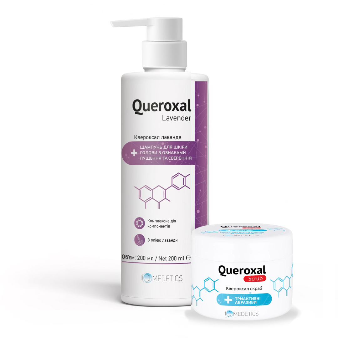 Спільне використання Квероксал скрабу та шампуню Квероксал лаванда забезпечує синергічний ефект: