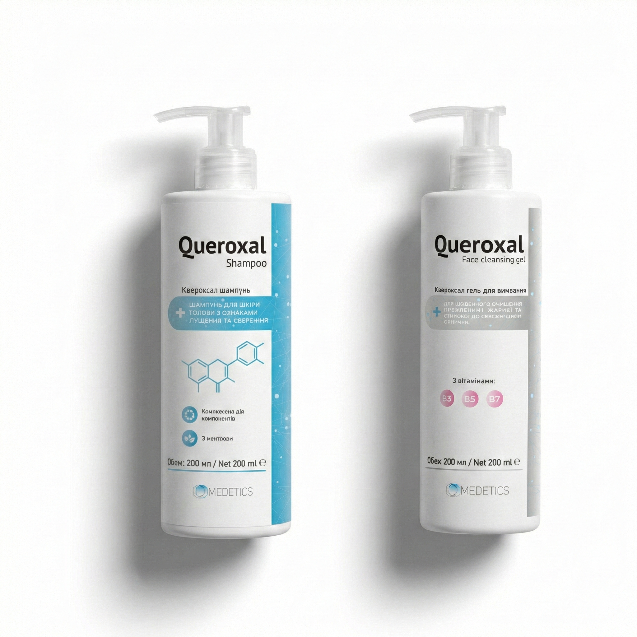 Квероксал шампунь 200 мл та Квероксал гель – промо набір для догляду за шкірою голови та обличчя.